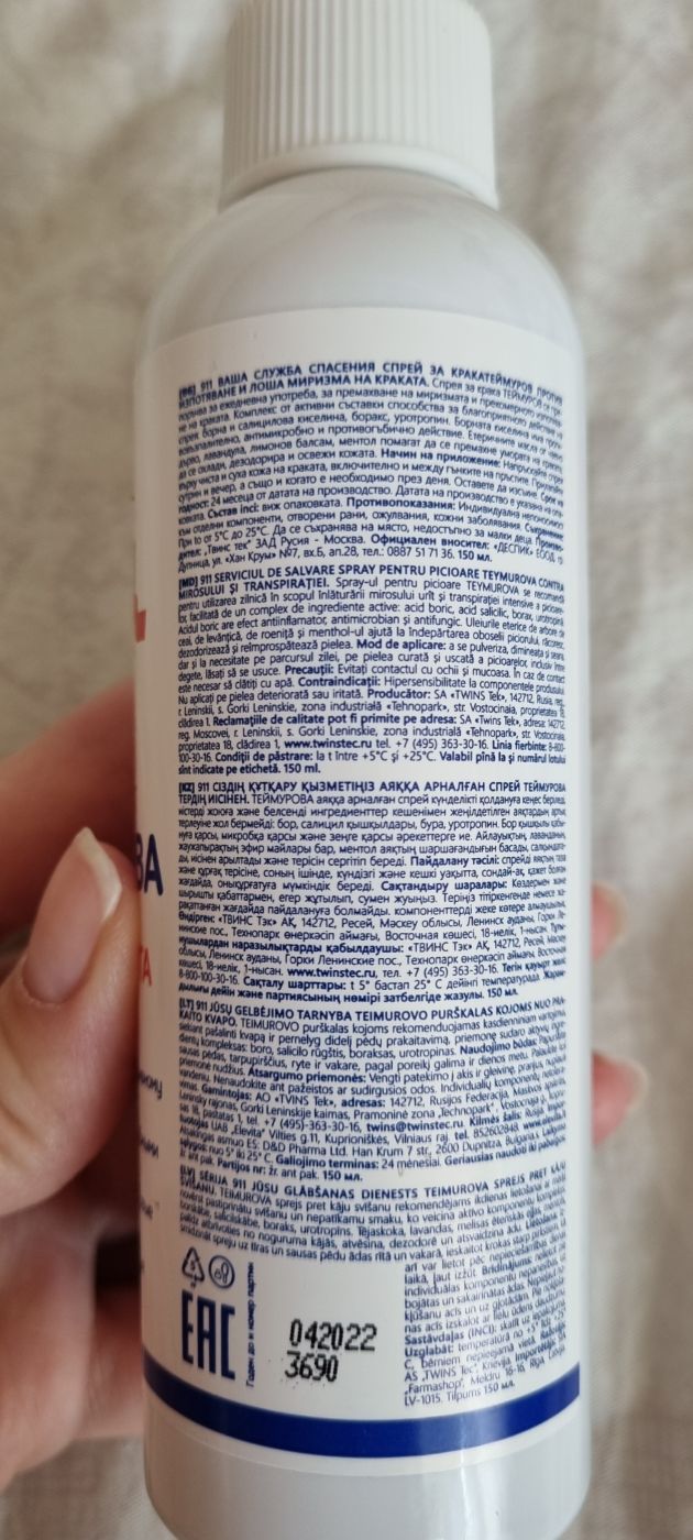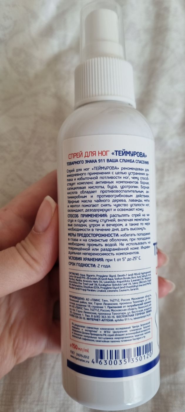 Отзывы и вопросы о товаре «Спрей «911 Теймурова» для ног от запаха пота, 150 мл»