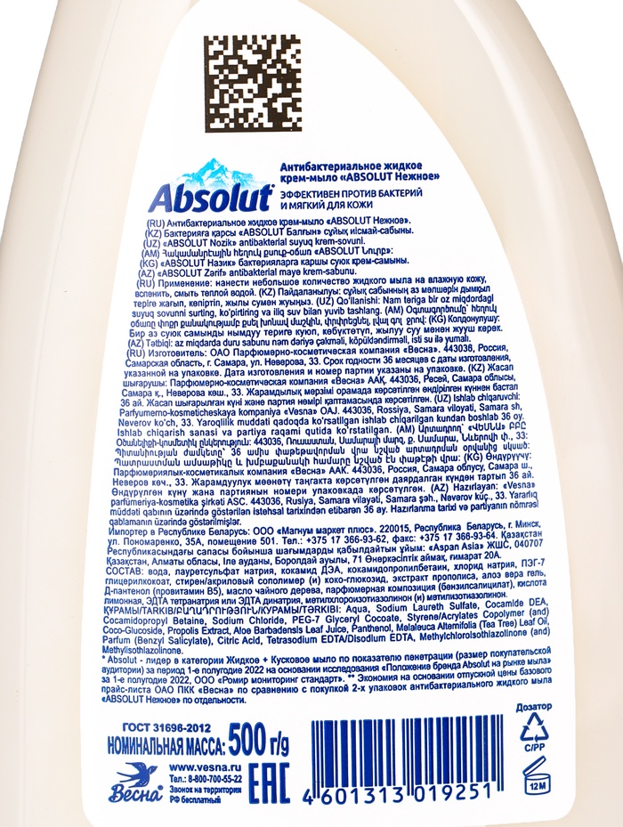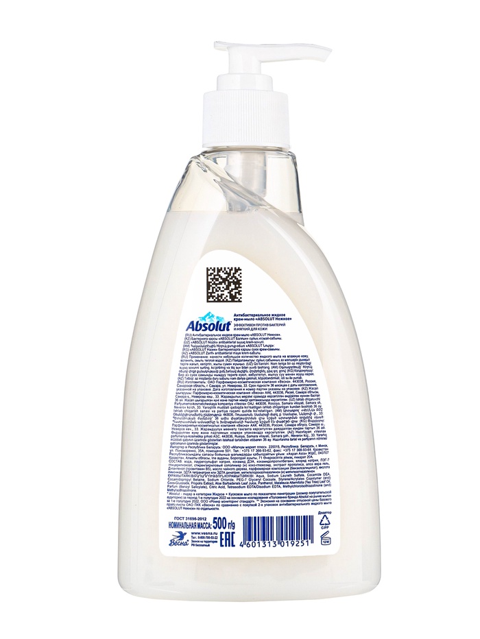 Жидкое крем-мыло Absolut «Нежное» — это гармоничное сочетание эффективной антибактериальной защиты и мягкого ухода, подходящего даже для чувствительной кожи. Благодаря тщательно сбалансированной формуле с маслом чайного дерева и пантенолом, мыло не только бережно очищает кожу от загрязнений и бактерий, но и помогает сохранить её естественное увлажнение и эластичность.
