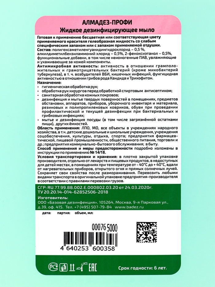 Антисептик-дезинфицирующее средство, жидкое мыло «Алмадез-профи», канистра, 5 л