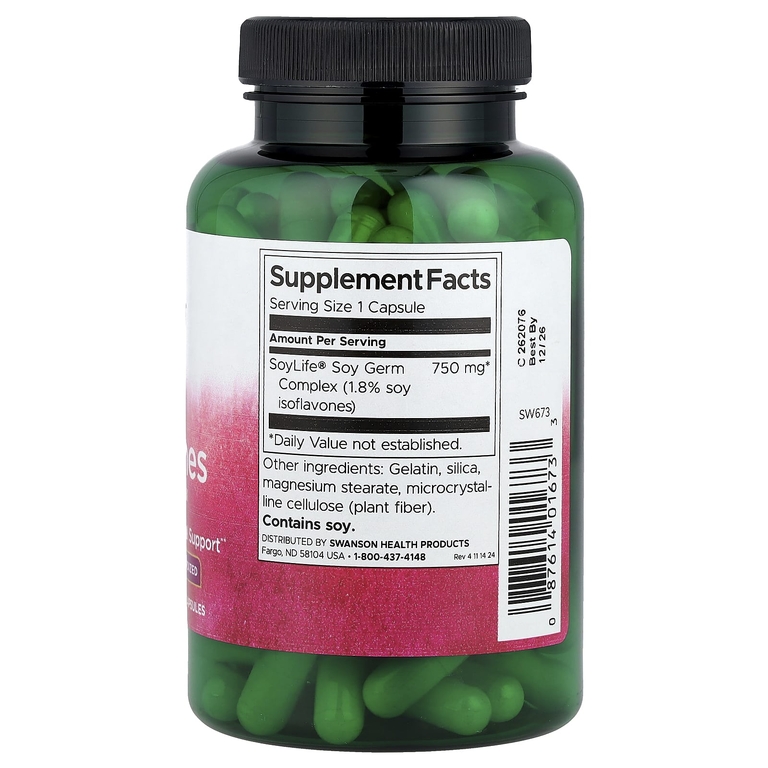 Изофлавоны сои премиального качества Swanson помогают поддерживать сердечно-сосудистую систему, укреплять кости, устранять дискомфорт в период менопаузы и многое другое. Наши капсулы с соевыми изофлавонами содержат 750 мг комплекса соевых зародышей SoyLife®, стандартизированного до 1,8% содержания изофлавонов. Это простой способ ежедневно получать здоровые соевые питательные вещества.