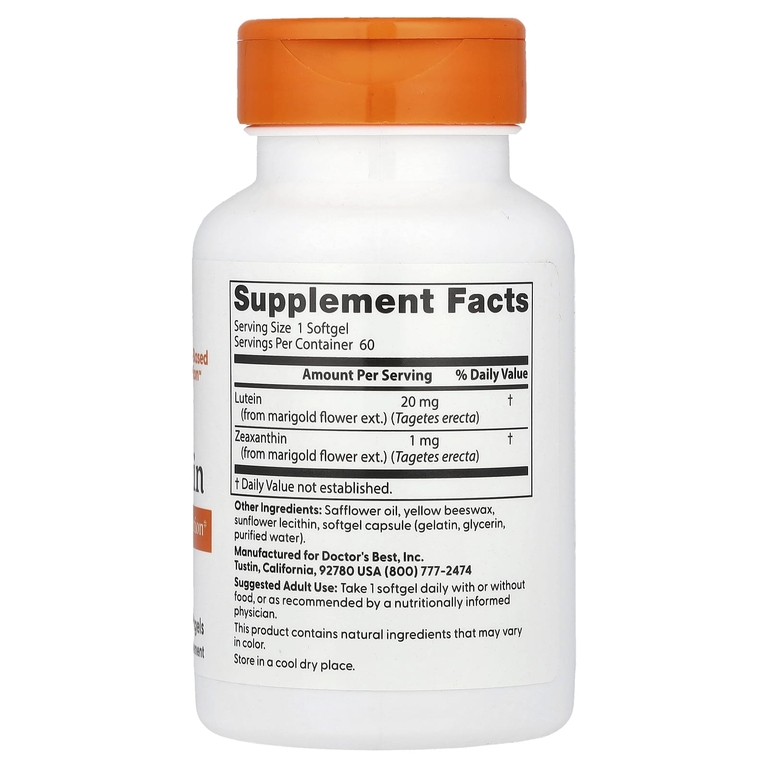 Специалисты Doctor's Best ставят на первое место преимущества для зрения, полученные из даров природы. Наша формула содержит лютеин, природный каротиноид, полученный из цветков бархатцев, который выступает защитным щитом, поддерживая как зрение, так и общее здоровье.
