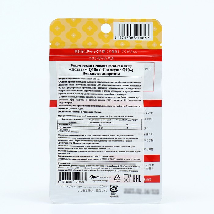 Область применения: для реализации населению в качестве биологически активной добавки к пище - источника коэнзима Q10, дополнительного источника витамина B6, для регулирования артериального давления, восстановления и поддержания энергетического обмена в сердечной мышце и стенке коронарных сосудов, снижения уровня сахара в крови, предупреждения развития инфаркта миокарда.
