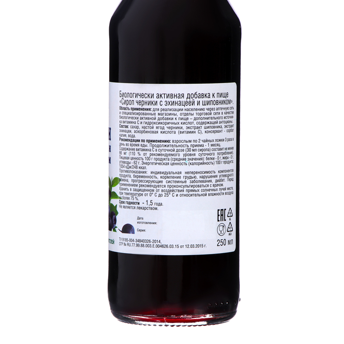 Сироп черники с эхинацеей и шиповником, 250 мл