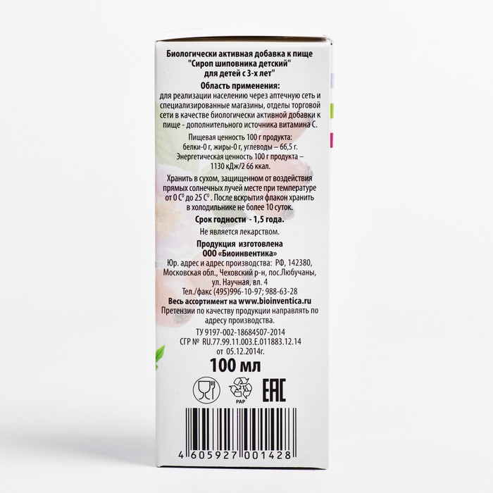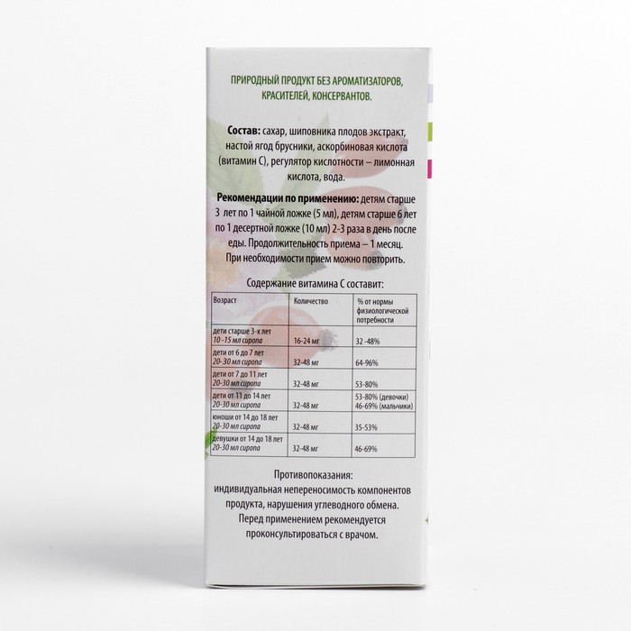Сироп шиповника для детей с 3-х лет, при простуде и гриппе, ягоды брусники, 100 мл