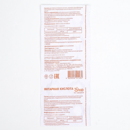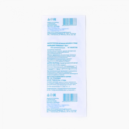 Кальция глюконат Экотекс, 10 таблеток по 0.5 г