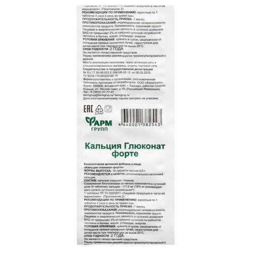 Состав: кальция глюконат, глюкоза (наполнитель).
