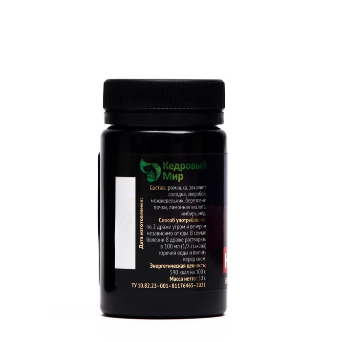Состав: ромашка, эвкалипт, солодка, зверобой, можжевельник, берёзовые почки, лимонная кислота, имбирь, мёд.