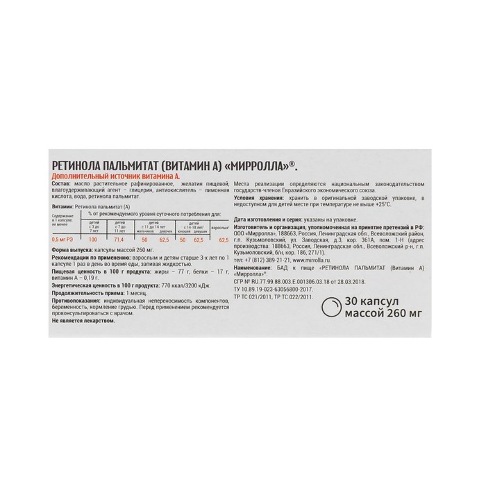 Витамин А, он же ретинол, недаром занимает первое место в «витаминном алфавите» — он принимает участие во всех основных процессах организма. Он участвует в формировании и поддержании красивой кожи, здоровых зубов, костей и мягких тканей. Дополнительный источник витамина А.