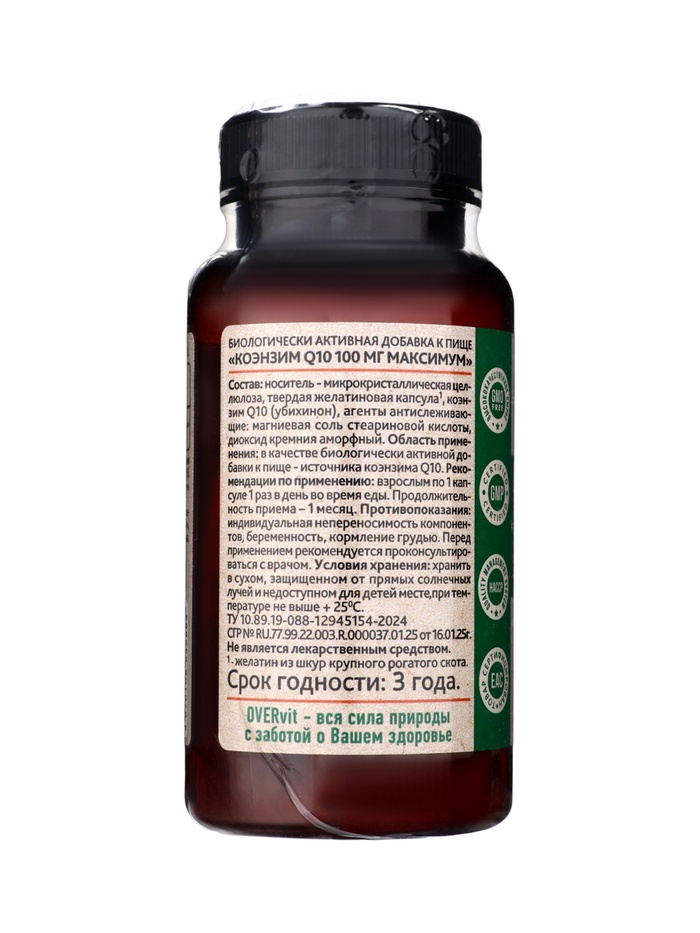 Коэнзим Q10 максимум OVERvit, 100 мг, 60 капсул — это высококонцентрированный комплекс, разработанный для поддержки энергетического обмена, сердечно-сосудистой системы и общего тонуса организма. Коэнзим Q10 является естественным антиоксидантом, который играет ключевую роль в производстве клеточной энергии и защите клеток от окислительного стресса. Препарат особенно полезен при повышенных физических и умственных нагрузках, для людей старше 30 лет и тех, кто хочет поддерживать здоровье сердца и сосудов.