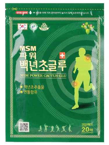ПЛСТ Пластырь для тела с экстрактом опунции и ментолом MSM POWER CACTUS GLU набор 20шт