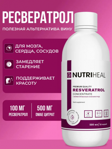 КОМПЛЕКСНАЯ ПИЩЕВАЯ ДОБАВКА ФЕРМЕНТИРОВАННЫЙ СОК ВИНОГРАДА, ОБОГАЩЕННЫЙ РЕСВЕРАТРОЛОМ (100МГ РЕСВЕРАТРОЛА И 500 МГ ДМАЕ В 1 ПОРЦИИ)