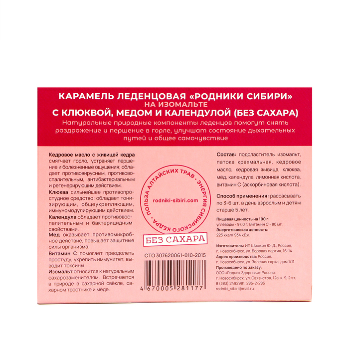 Сторонники здорового образа жизни, ценящие быструю и активную помощь, даже в период распространения гриппа и простуды легче преодолевают все симптомы болезней или вовсе избегают заболевания с нашими леденцами, созданными специально для людей, предпочитающих помогать своему организму исключительно натуральными средствами. Противовирусные и антисептические компоненты подавляют рост болезнетворных бактерий. Укрепляющие иммунитет свойства леденцов настраивают Ваш организм на самостоятельное успешное преодоление простуды. Уменьшают боль в горле, облегчают дыхание, смягчают воспаленные слизистые оболочки непосредственно в процессе рассасывания леденца. Леденцы отличаются уникальным качеством: они начинают действовать как мини-ингалятор незамедлительно для облегчения кашля и вывода мокроты. Мягкий седативный эффект леденцов успокаивает возбужденную нервную систему, снимает раздражительность и позволяет Вашему организму сконцентрироваться на скорейшем выздоровлении. Мягкость вкуса и натуральный состав леденцов оценят по достоинству все люди, предпочитающие укреплять здоровье природными средствами. Противовирусные и антисептические компоненты леденцов приостанавливают рост числа бактерий на слизистых оболочках ротовой полости и носоглотки. Противовоспалительное и отхаркивающее действие леденцов способствует легкому освобождению от насморка и мокроты.