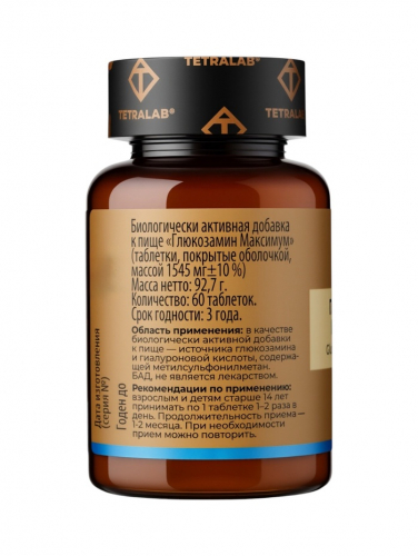 Глюкозамин Максимум TETRALAB, укрепление суставов и хрящей, поддержка подвижности, 60 таблеток