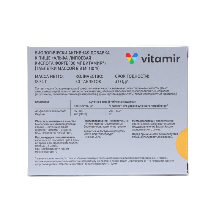 Альфа-липоевая кислота, при похудении, 100 мг, 30 таблеток