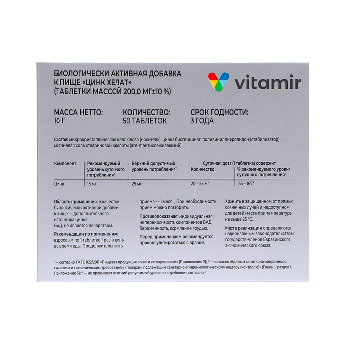 Цинк хелат 200 мкг ВИТАМИР таб. №50
