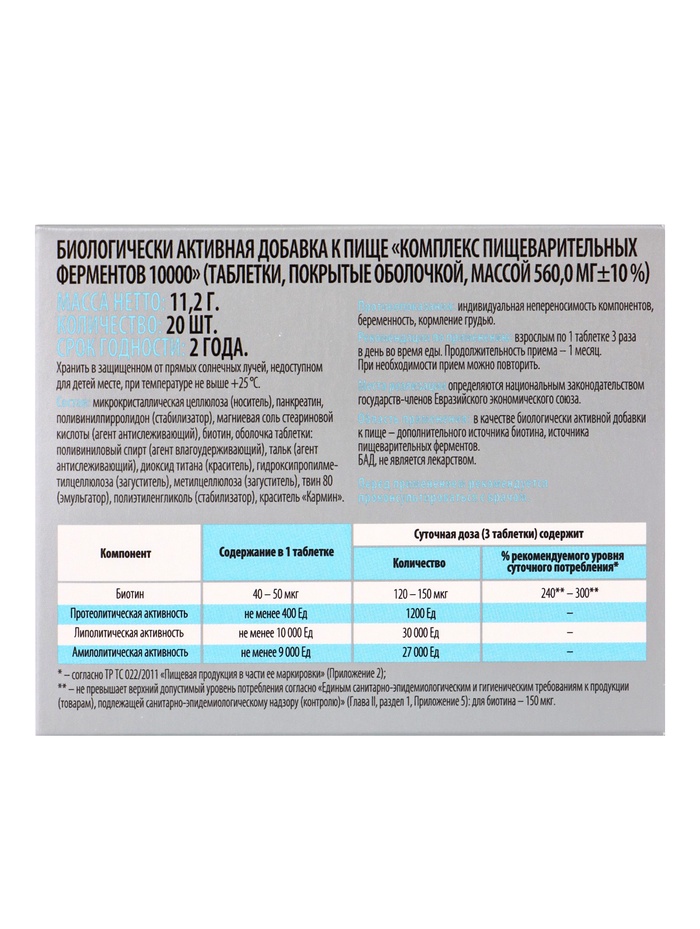 * Высокая активность ферментов. 10 000 единиц активности в одной таблетке для максимальной поддержки пищеварения.