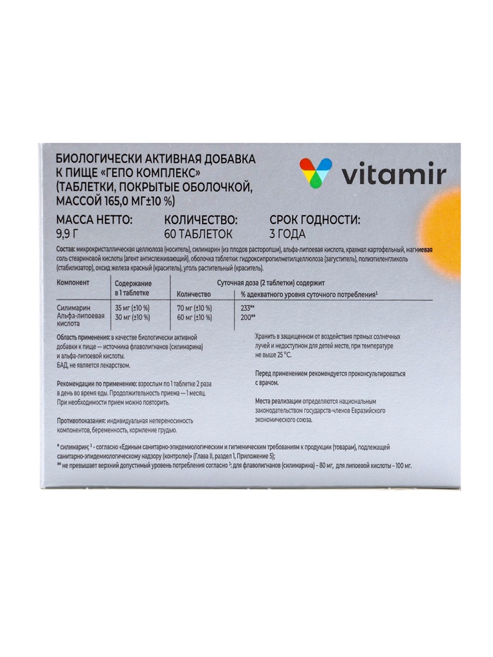 Показания: в качестве биологически активной добавки к пище – источника флаволигнанов (силимарина) и альфа-липоевой кислоты
