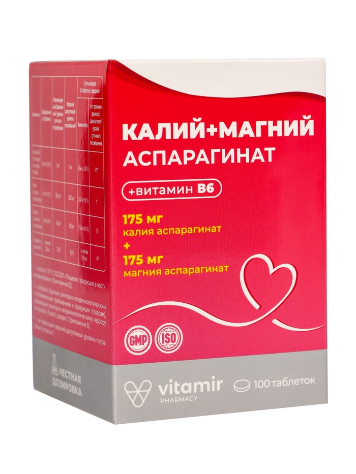Калий + Магний Аспарагинат «Витамир» — надёжная поддержка здоровья сердца, нервной системы и мышц. Подходит для активных людей, при стрессах, повышенных нагрузках и в период восстановления организма.