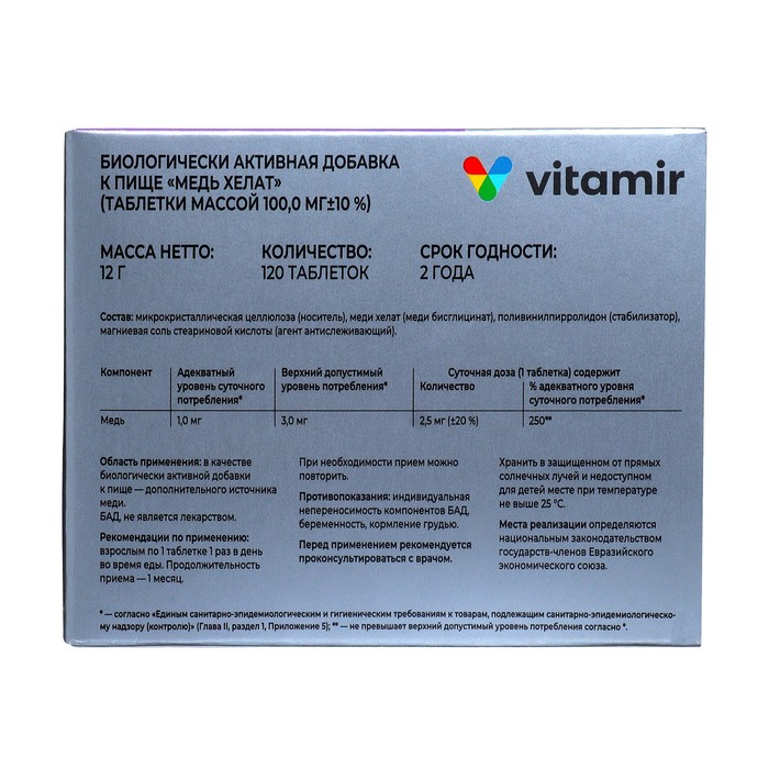 «Медь хелат» - биологически активная добавка к пище, дополнительный источник меди, необходимой для работы иммунной системы и правильного протекания обменных процессов.