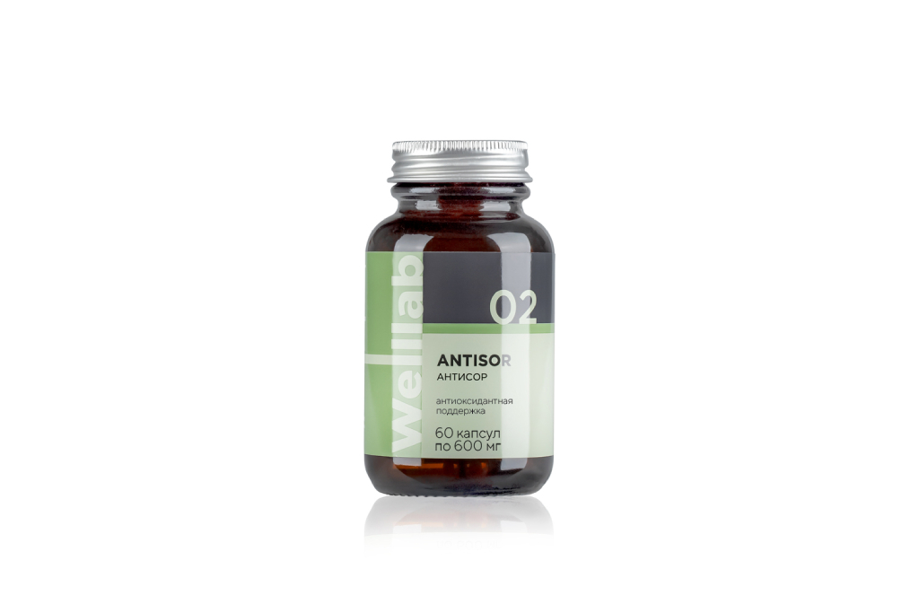 Основа нашей жизни — кислород — может стать и токсичным веществом в том случае, когда из него образуются активные формы. Пока свободных радикалов в организме немного, здоровью ничего не угрожает. Но в условиях плохой экологии, в результате неправильного питания, употребления алкоголя, курения, вследствие вирусных инфекций количество свободных радикалов в организме резко возрастает. Результат — выраженный окислительный стресс, который приводит к гибели клеток и развитию многих заболеваний. WELLLAB ANTISOR ACTIVE — антиоксидантный комплекс широкого спектра действия. Антиоксиданты защищают клеточные оболочки и ДНК от повреждения свободными радикалами кислорода, замедляют процессы старения и развития заболеваний. Упаковка: 60 капсул ОСОБЕННОСТИ СОСТАВА WELLLAB ANTISOR ACTIVE L-глутамин (аминокислота) повышает активность белкового синтеза, необходим для выведения из организма аммиака. Играет ключевую роль в регуляции синтеза глутатиона, который защищает клетки от окислительного повреждения. Повышает активность иммунной системы. Шиповник (плоды) обладает общеукрепляющим действием, стимулирует неспецифическую резистентность организма. Усиливает регенерацию тканей, уменьшает проницаемость сосудов. Виноградные косточки ускоряют выведение отработанных веществ из клеток. Способствуют защите от окислительного стресса. Цинк в качестве катализатора активирует более 200 ферментов, является компонентом белков, гормонов, нейропептидов. Бета-каротин обладает антиоксидантным действием. Необходим для обеспечения функции зрения, стимуляции иммунной системы, сохранения здоровья кожи. Медь является кофактором супероксиддисмутазы, участвующей в нейтрализации свободных радикалов кислорода. Витамины А и Е обладают антиоксидантным действием, способствуют укреплению стенок и повышению эластичности кровеносных сосудов. В КАКИХ СЛУЧАЯХ РЕКОМЕНДУЕТСЯ Людям, подверженным более высокому риску дефицита антиоксидантов (курильщикам, пожилым людям, женщинам в период климакса). Для поддержки организма в период сезонных вирусных инфекций. Для адаптации к повышенным физическим нагрузкам. В качестве элемента комплексной терапии заболеваний сердца и сосудов*. При преждевременных признаках старения кожи. При проживании в экологически неблагоприятной местности. При медленно заживающих ранах. При повышенном зрительном напряжении. * Совместно с другими рекомендациями врача. БИОЛОГИЧЕСКИ АКТИВНАЯ ДОБАВКА К ПИЩЕ. НЕ ЯВЛЯЕТСЯ ЛЕКАРСТВЕННЫМ СРЕДСТВОМ. СОСТАВ: L-глутамина гидрохлорид, косточек виноградных экстракт, капсула желатиновая (желатин), шиповника плодов экстракт, лактоза (носитель), токоферола ацетат, цинка цитрат, бета-каротин, тальк (агент антислёживающий), меди аспарагинат, кальция стеарат (агент антислёживающий), ретинола ацетат. Приём 2 капсул (рекомендуемая суточная доза) обеспечит поступление: Наименование Содержание, мг % РСП 1 / АУП 2 L-глутамин 240 48 2 Проантоцианидины 195 195 2* Витамин Е 50 500 1* Цинк 20 133 1* Бета-каротин 4,8 96 2 Медь 2,5 250 1* Витамин А 1,6 200 1* 1 РСП — рекомендуемое суточное потребление. 2 АУП — адекватный уровень потребления . * Не превышает верхнего допустимого уровня потребления. ОБЛАСТЬ ПРИМЕНЕНИЯ: для реализации населению в качестве биологически активной добавки к пище — источника L-глутамина, проантоцианидинов, бета-каротина, дополнител