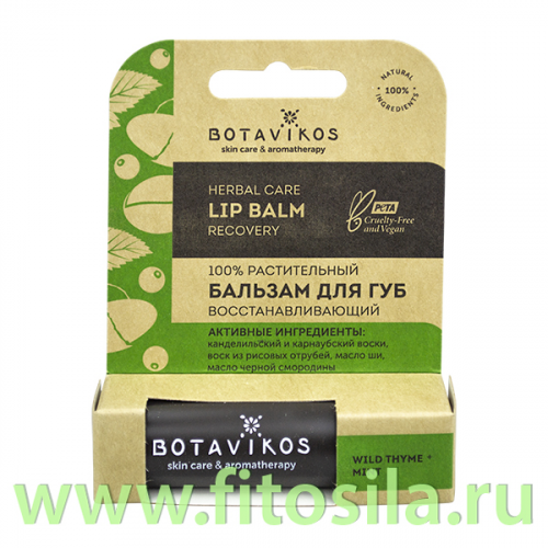 Бальзам для губ Защитный, 100% растительный, Лаванда + мелисса, 4г "Botavikos"