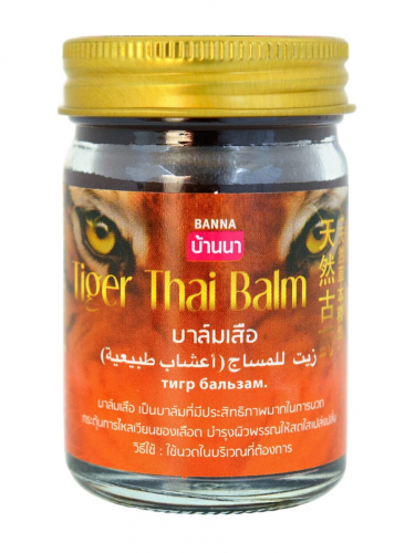 TIGER THAI BALM, Banna - народное средство на основе различных природных трав и масел. Применяется для растирания суставов и мышц. Тайцы широко используют бальзам для массажа и расслабления, при болях в мышцах, головных болях и простуде. Вызывает интенсивный приток крови, ускоряет рассасывание гематом, подходит для быстрого восстановления после переломов.