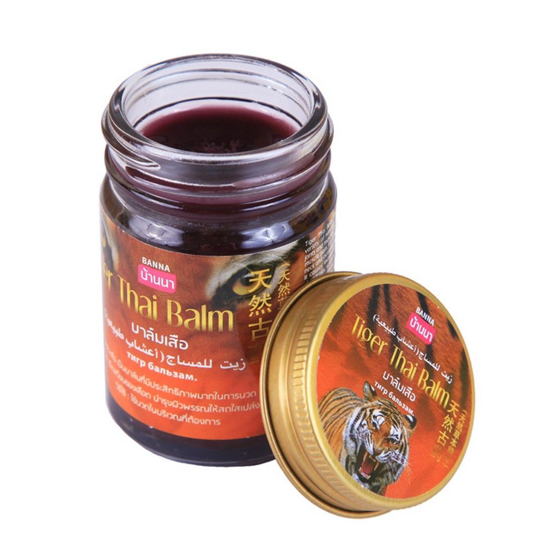 Знаменитый тайский тигровый бальзам Tiger Thai Balm Banna содержит более 100 различных компонентов целебных растений произрастающих в горных лесах Таиланда. Обладает согревающим действием. Применяется для снятия болей и воспалений в суставах, для обезболивания при прострелах, ишиасе, подагре. Ускоряет сращивание костей при переломах. Используется для снятия боли при травмах (ударах, растяжениях, перенапряжениях и пр.), используется для разогрева мышц перед занятием спортом. Ускоряет рассасывание гематом. Бальзам быстро снимает раздражение после укусов насекомых. Используется для ингаляций, для растирания груди и спины при простуде и кашле. Тигровый бальзам широко применяется для растирания конечностей при онемении и параличе.