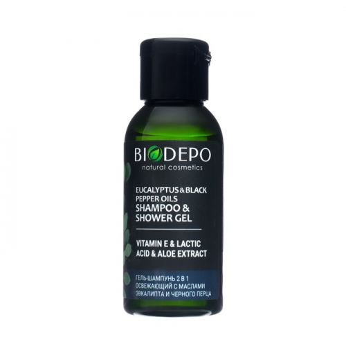 Гель и шампунь для душа Biodepo с эфирными маслами эвкалипта и черного перца, 50 мл