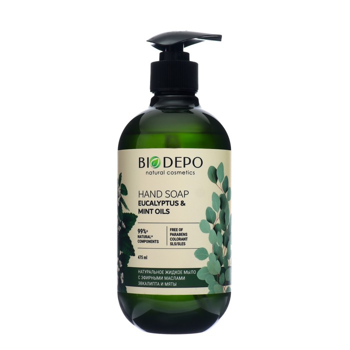 Жидкое мыло для рук натуральное Biodepo с эфирными маслами эвкалипта и мяты, 475 мл