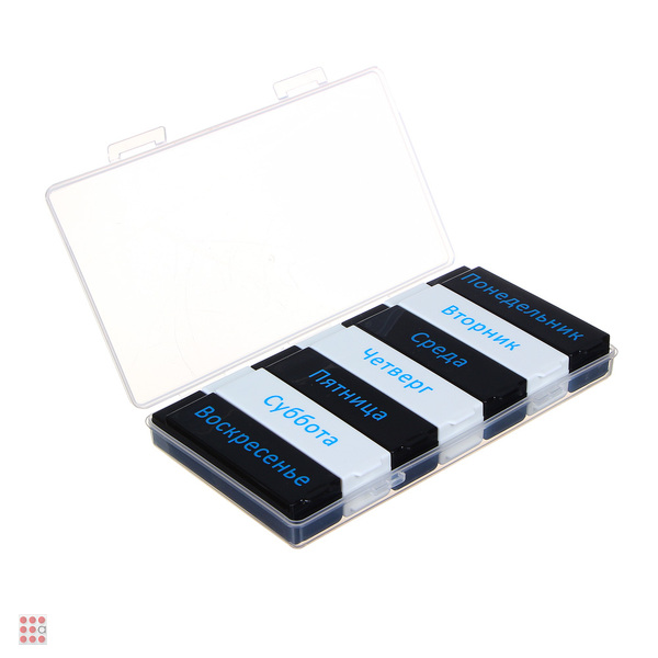 Врач выписал препараты для ежедневного приема? Чтобы не держать лишнюю информацию в голове и не пропустить прием лекарств, витаминов или БАДов, был создан Бокс для таблеток VETTA. Пластиковый бокс имеет 7 отсеков с маркировкой по дням недели. В каждый отсек поместится несколько таблеток или капсул. Заготовьте препараты заранее и вам не придется вспоминать, приняли ли вы лекарство в нужное время.