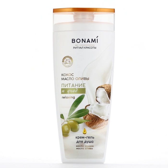 Гель для душа BONAMI Олива и Кокос.Питательный гель с нежным кокосовым ароматом бережно очищает кожу, придавая ей мягкость и гладкость.Насыщенная бархатистая формула с увлажняющими компонентами, маслом кокоса и оливы ухаживает и питает кожу.Восстанавливает гидролипидный баланс кожи, способствует упругости и эластичности.