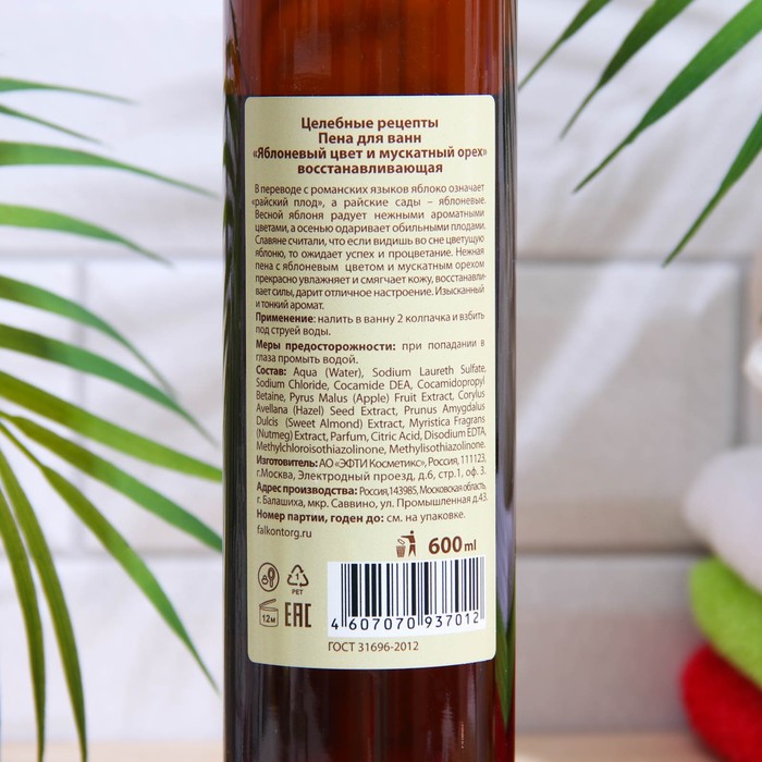 Пена для ванн Целебные рецепты «Яблоневый цвет и мускатный орех», 600 мл