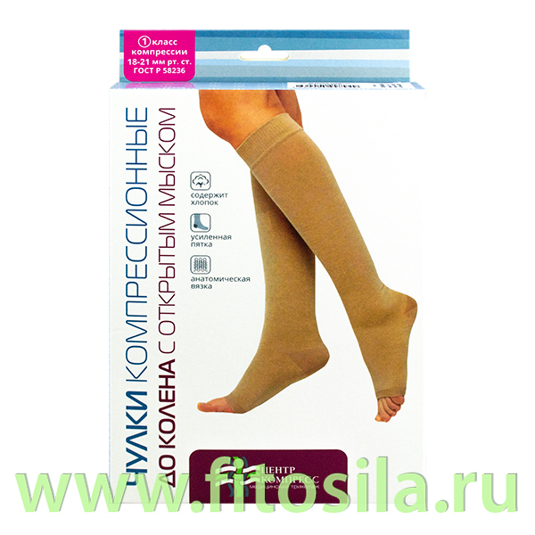 Чулки компрессионные до колена с открытым мыском (I класс компрессии, Типоразмер № 2 ). ПАРА Цвет - кремовый. Артикул - Г1(п)-К