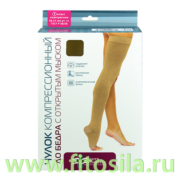 Чулок компрессионный до бедра с открытым мыском ( I класс компрессии, Типоразмер № 3).Цвет - кремовый. Артикул - Ч1-К