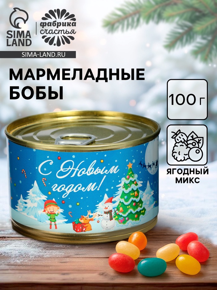 Мармелад бобы «С Новым Годом!», в консервной банке, 100 г