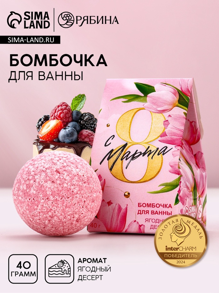 Бомбочка для ванны «С 8 марта!», 40 г, ягодный десерт
