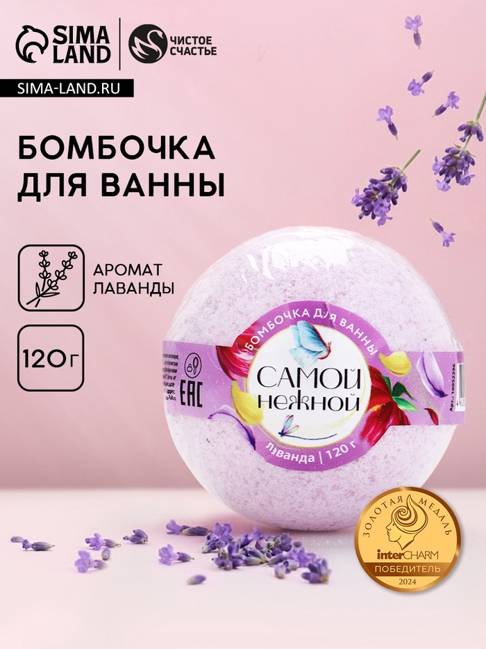 Бомбочка для ванны «Самой нежной», 120 г, аромат лаванды, ЧИСТОЕ СЧАСТЬЕ