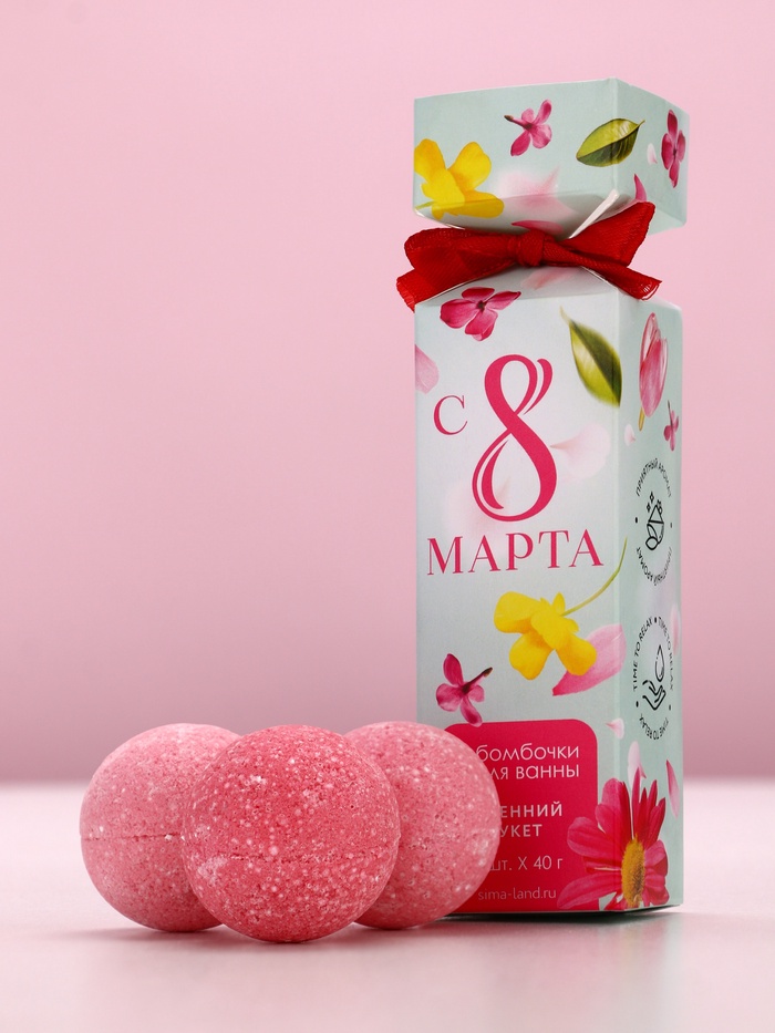 Бомбочки для ванны «8 Марта», 3×40 г, Чистое счастье