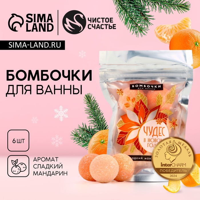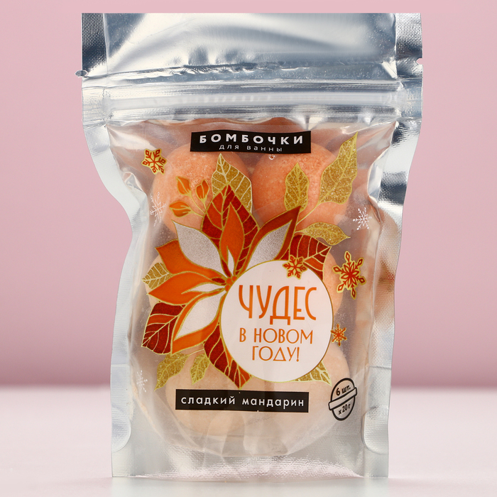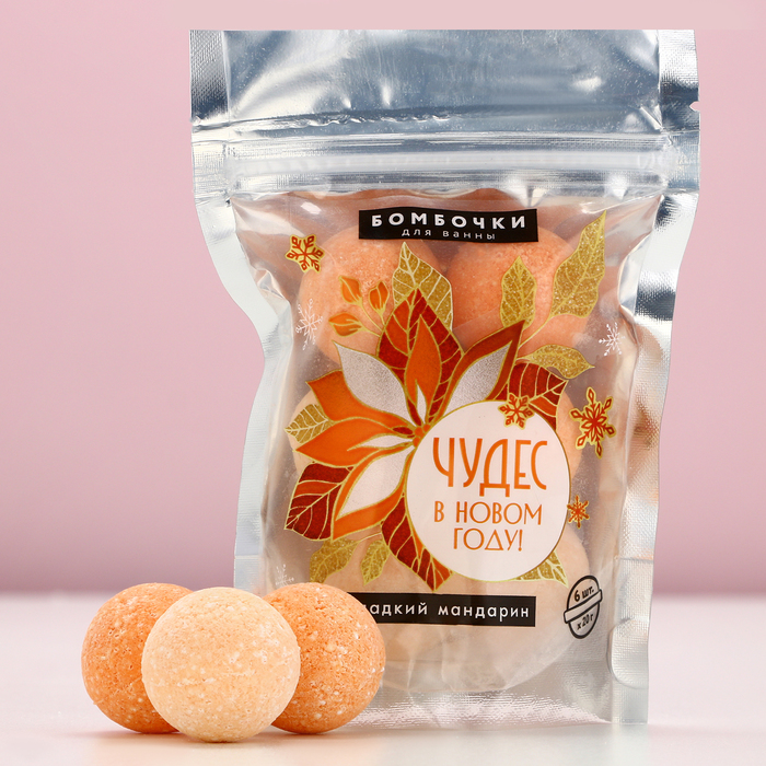 Бомбочки для ванны «Чудес в Новом году», 6×20 г, аромат сладкий мандарин, Чистое счастье