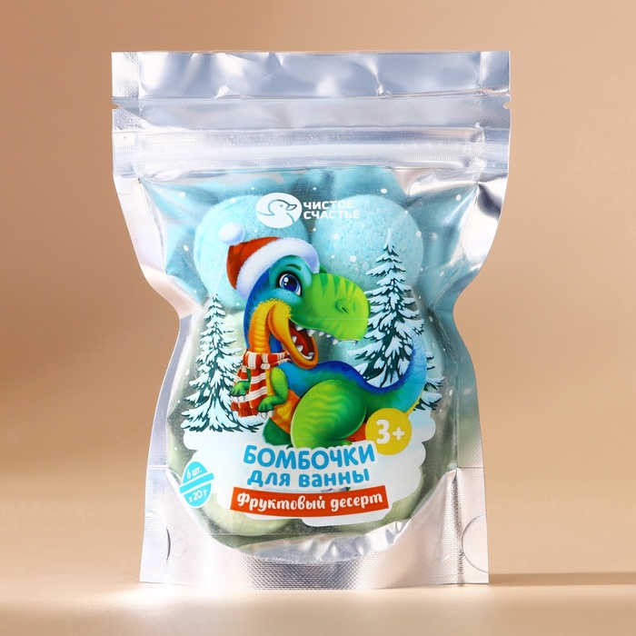 Бомбочки для ванны «Динозаврик», аромат фруктовый десерт, 6×20 г, Чистое счастье