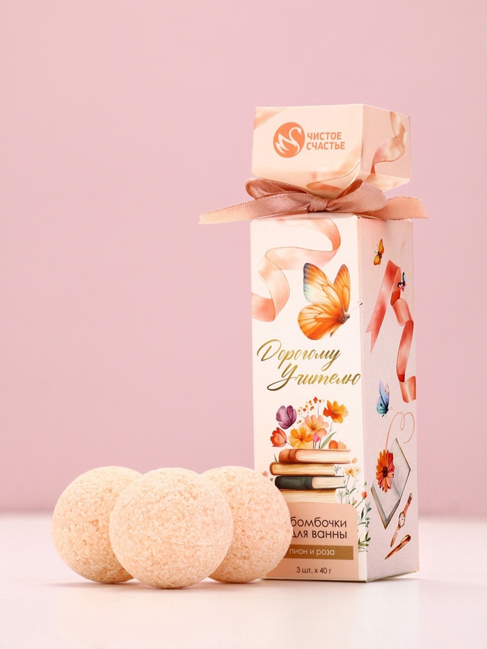 Бомбочки для ванны «Дорогому учителю», набор 3 шт. × 40 г, аромат пион и роза, Чистое счастье
