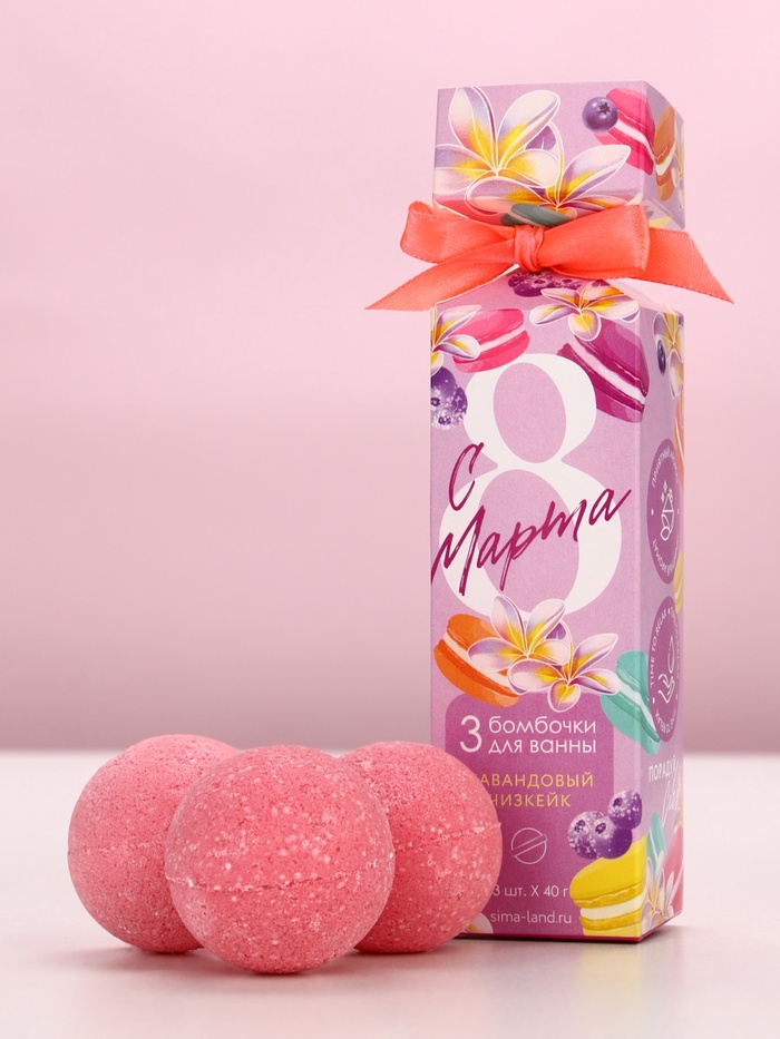 Бомбочки для ванны «С 8 Марта!», 3×40 г, Чистое счастье