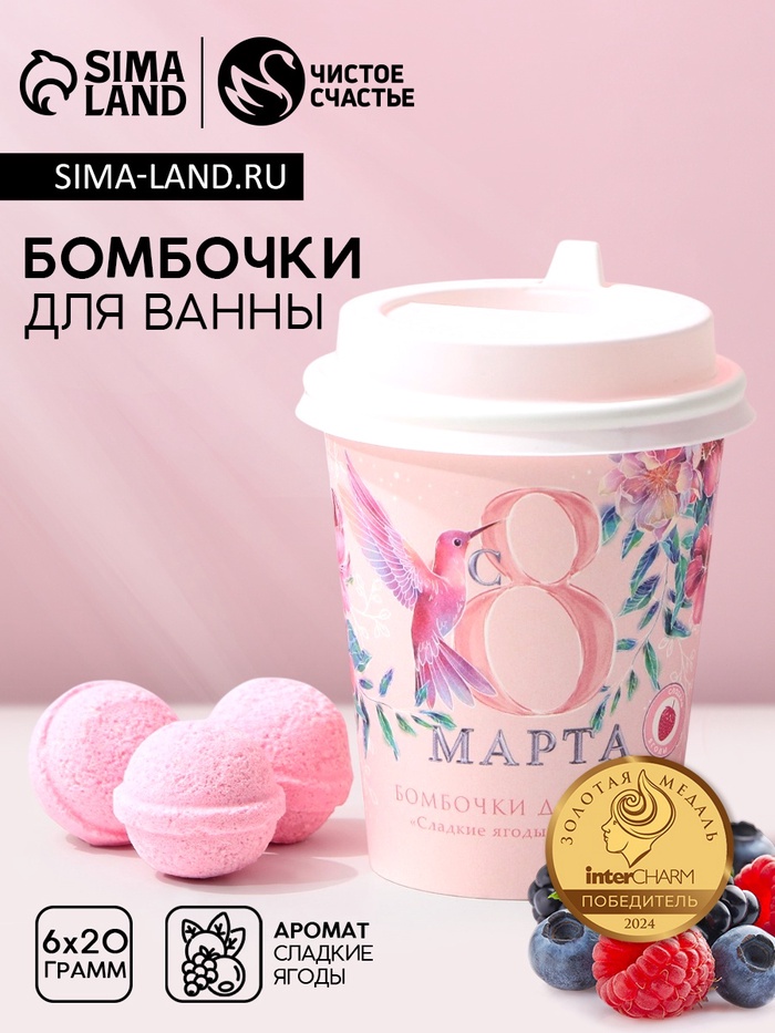 Бомбочки для ванны «С 8 Марта!», 6×20 г, Чистое счастье
