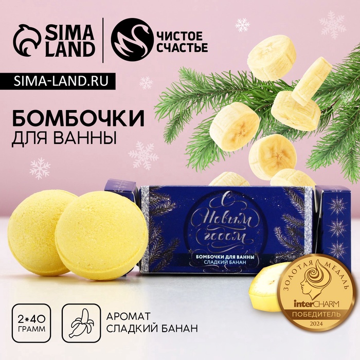 Бомбочки для ванны «С новым годом!», 2×40 г, аромат сладкий банан, Чистое счастье