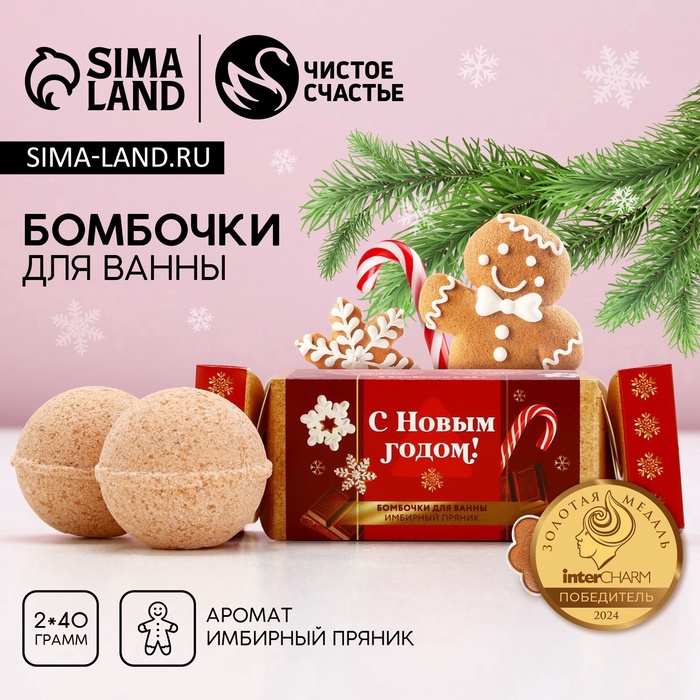 Бомбочки для ванны «С Новым годом», аромат имбирный пряник, 2×40 г, Чистое счастье