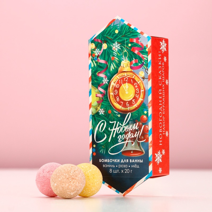 Бомбочки для ванны «С праздником», аромат ваниль, мед, роза, 8×20 г, Чистое счастье