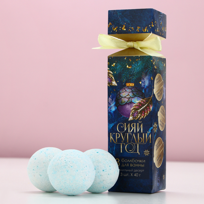Бомбочки для ванны «Сияй круглый год», аромат ванильный десерт, 3×40 г, Чистое счастье