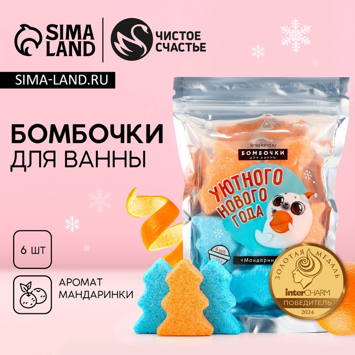 Бомбочки для ванны «Уютного Нового Года», 6×30 г, аромат мандарин, Чистое счастье