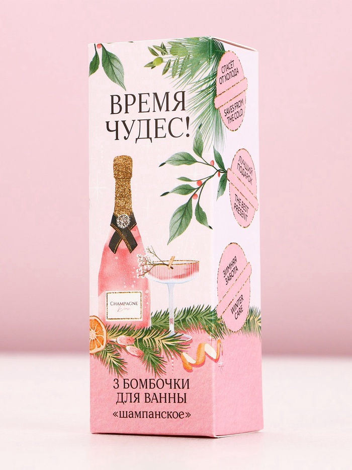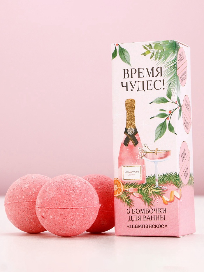 Бомбочки для ванны «Время чудес!», 3×40 г, аромат шампанского, Чистое счастье