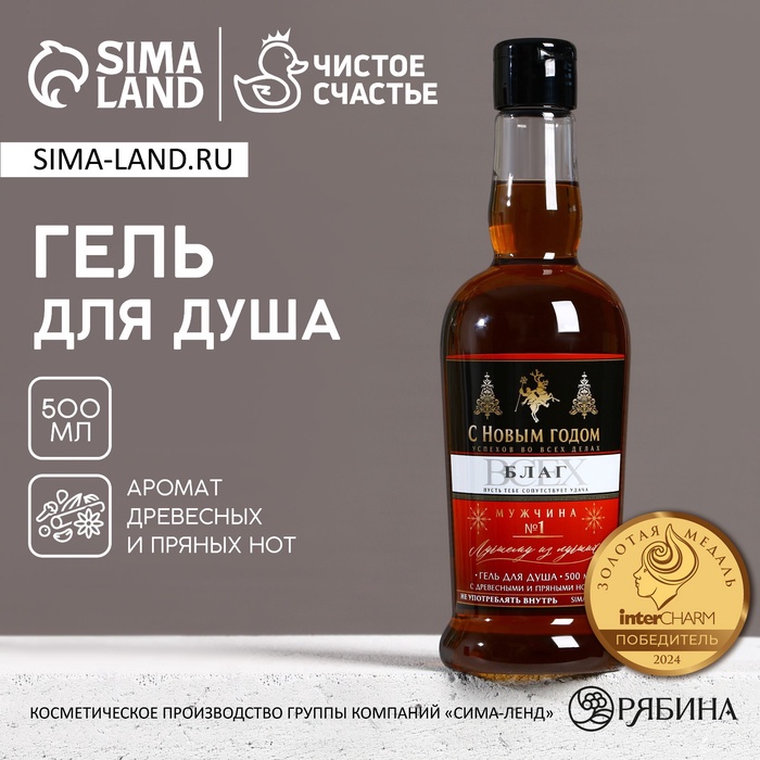 Гель для душа коньяк мужской «С новым годом!», 500 мл, аромат древесный с пряными нотами, Чистое счастье